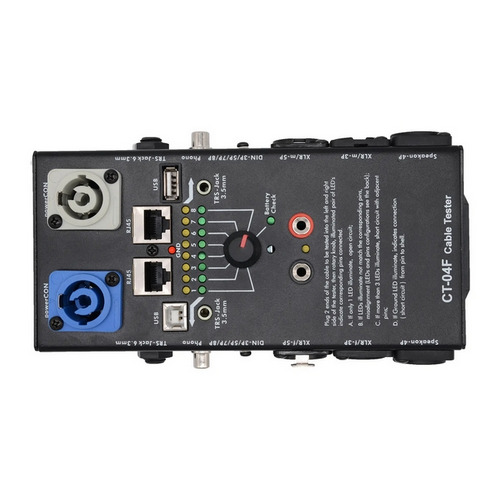 plug both ends of cable into appropriate sockets and turn the knob to check each pin connection